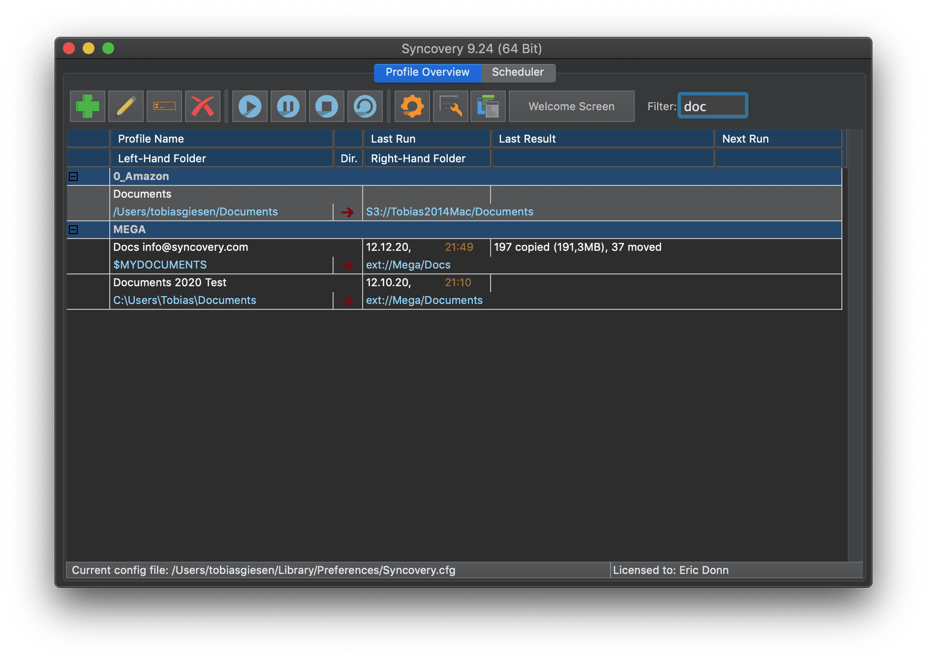 Как видно на скриншотах ниже, Syncovery также полностью поддерживает тёмный режим macOS и облачное хранилище MEGA: