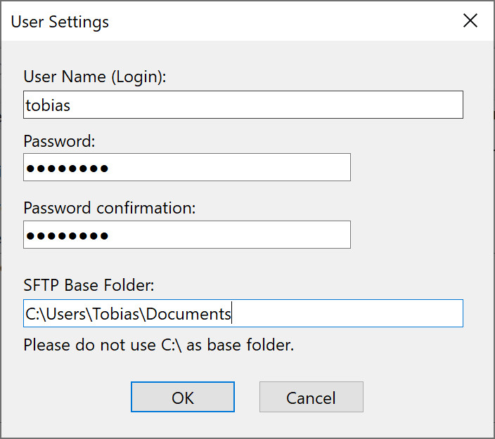 Если у вас есть папки на разных дисках, для каждого диска нужен отдельный пользователь. Кроме того, не следует использовать C:\ в качестве базовой папки SFTP для пользователя, так что это тоже может быть причиной, по которой вам понадобится больше одного пользователя. Вот два примера: