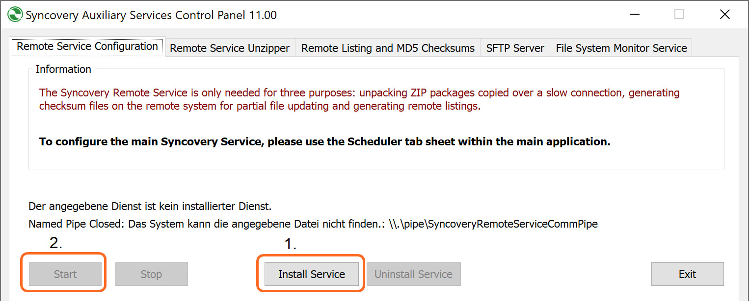 Затем можно установить и запустить Syncovery Remote Service, который включает сервер SFTP. Убедитесь, что окно командной строки для проверки закрыто.
