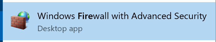 Если вы не получили запрос брандмауэра или позже выяснилось, что брандмауэр по-прежнему блокирует порт SFTP Server, вы можете создать правило, открыв параметры брандмауэра Windows согласно следующим скриншотам. Введите «Fire» в поле поиска меню «Пуск» Windows, чтобы перейти к настройкам брандмауэра: