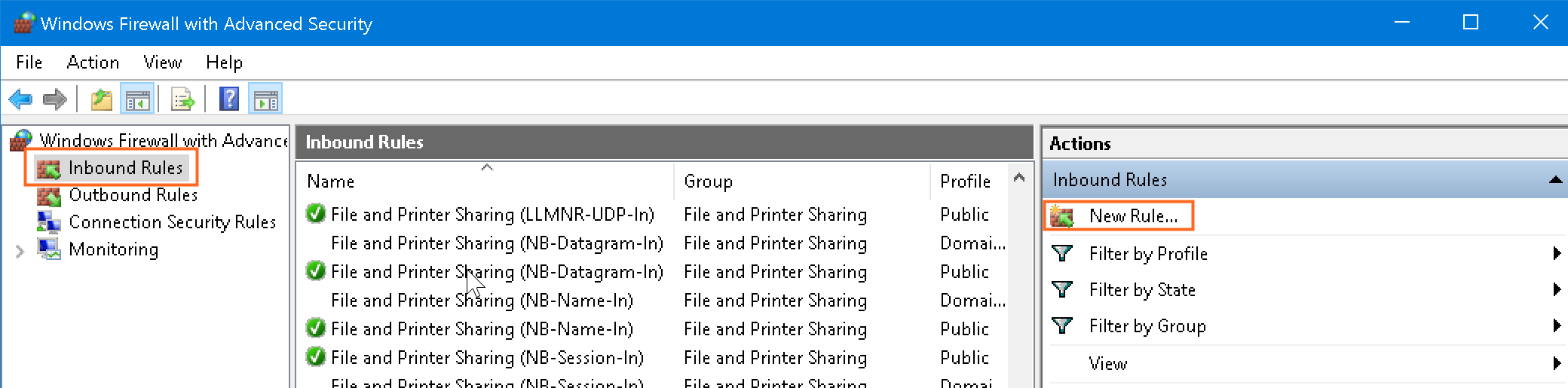 Настройка правила брандмауэра