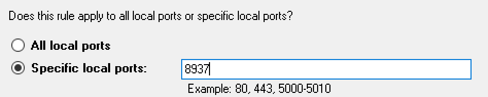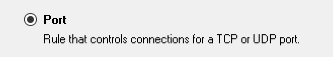 Мастер задаст вам несколько вопросов о правиле. Сначала убедитесь, что вы создаёте правило для порта: